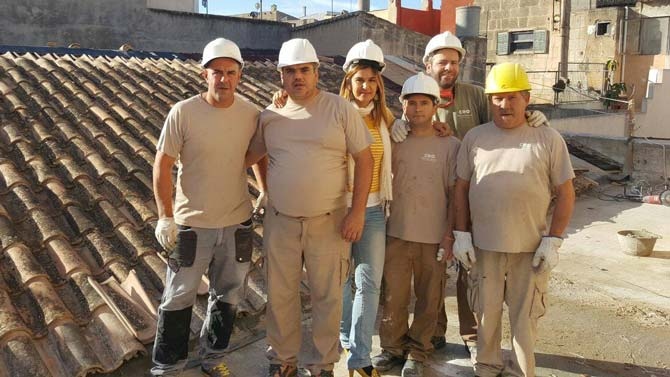 Ja s'han enllestit les obres a la façana, estructura i cobertes i ara arriba el moment de posar-se en marxa amb els acabats interiors i fusteria. Especial menció mereix la rehabilitació integral que s'ha fet a la coberta de la sala polivalent. Una gran feina a càrrec de tot l'equip tècnic, encapçalat per l'arquitecte Guillem Mateos i l'aparellador Carlos Pachon (arquitectura GMM), i les brigades que hi han treballat: una externa —liderada per Jeroni Puigròs (Entalaya Construccions) i una d'Estel de Llevant, integrada per quatre usuaris —Manuel, Óscar, Toni i Mario— que són un gran exemple d'integració laboral, amb en Xisco Cuesta de monitor.