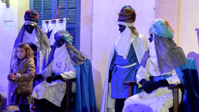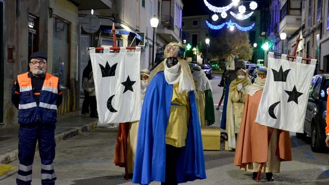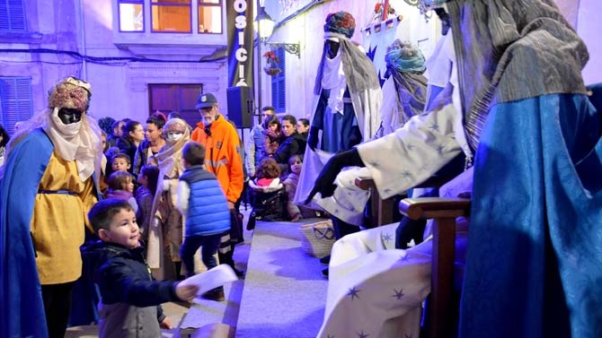 Llegaron montados sobre dos caballos y precedidos por la comitiva real a la plaça de Sa Font de Santa Margalida, donde una multitud de padres y niños los esperaban ilusionados, con el deseo urgente de poder hacer la entrega en el buzón real de su carta de petición de regalos a los Reyes Magos.