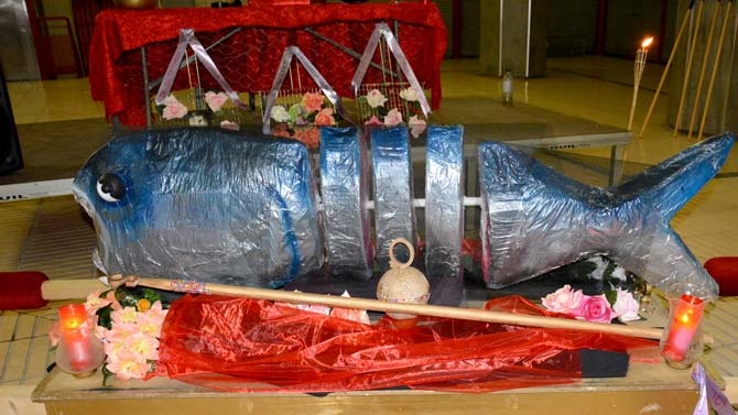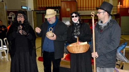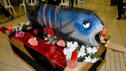 El Mercado Municipal sirvió a modo de Catedral para efectuar el velatorio y la misa funeral por la difunta, celebrada por la bisbessa, Marta Obrador. Durante el mismo, se hizo el traspaso de la fiesta para el año que viene a los Quintos’99. Gran interpretación de Marta, quien llevó en todo momento el desarrollo de la ceremonia, a pesar del poco tiempo que había tenido para su preparación. Estuvo espléndida!!!