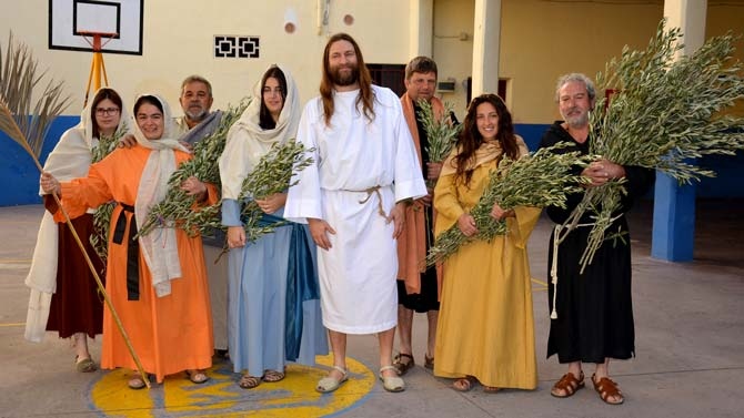 Los voluntarios escenificaron la entrada triunfal de Jesús en Jerusalén, mientras se impartía la bendición, y los asistentes agitaban las palmas y ramas de olivo en señal de bienvenida. A continuación, la procesión dio la vuelta a la manzana donde está ubicada la iglesia. Al finalizar, los ciudadanos y las autoridades eclesiásticas celebraron la misa propia del Domingo de Ramos.