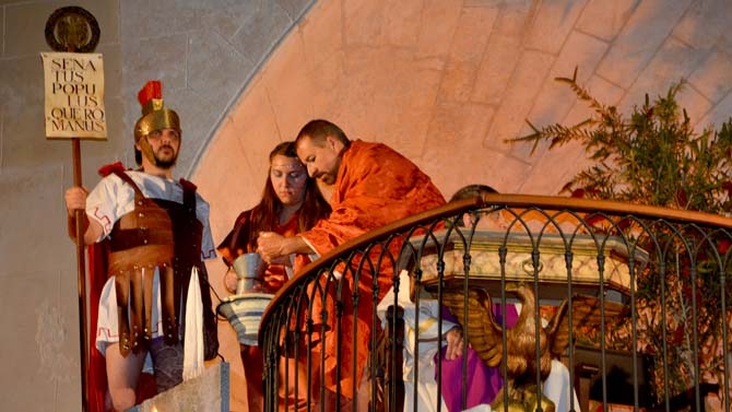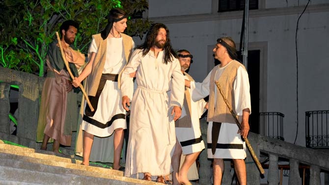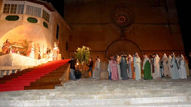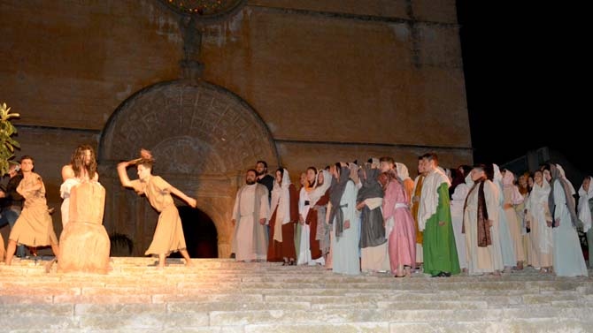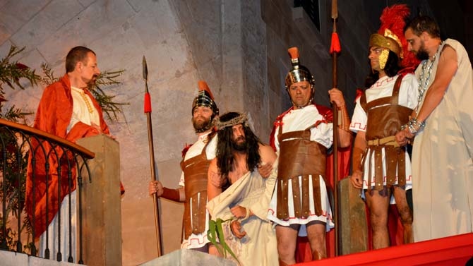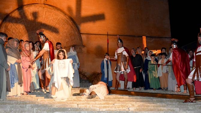 Decenas de voluntarios, volvieron a dar vida en la escalinata de la parroquia de Sant Miquel de Felanitx a la pasión de Cristo, un repaso por los momentos claves en la historia, recreados con maestría y profesionalidad, bajo la dirección de Pep Lluís Fernández.