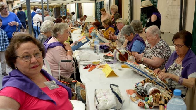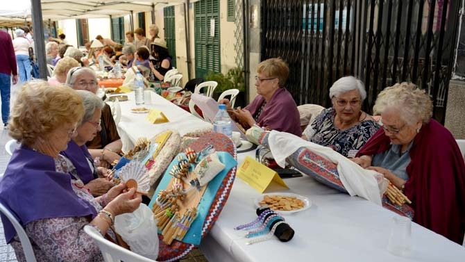 El espectáculo de color que ofrecía la calle Major con las mujeres bordando al estilo tradicional mallorquín era impresionante. Fue una de las manifestaciones de este antiguo arte, más multitudinarias que hayamos podido observar en los pueblos de la comarca.