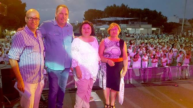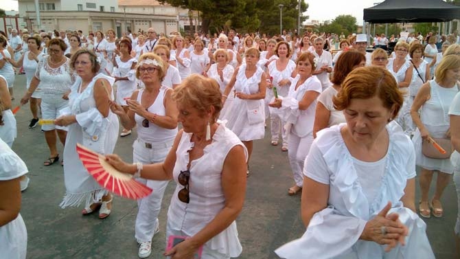 Todos los participantes este año vistieron de blanco, el color lo ponían abanicos de diferentes tonalidades, que cumplían de maravilla la misión de mover un poco el aire, ante el bochorno estival que seguimos sufriendo.
