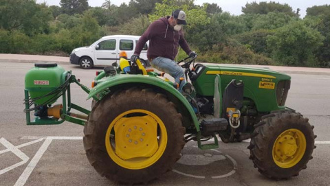 Dissabte horabaixa els tractors han tornat sortir a esquitxar per desinfectar els carrers de Portocolom.
