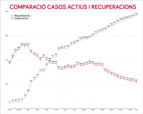 Avui, dia 7 de maig, després de 21 dies d'ençà que varen ingressar a la Unitat de Cures Intensives el passat dia 17 d’abril, mare i fill abandonen el servei entre els aplaudiments i l’emoció de tot el personal. Mari Carmen i Miguel han estat tots aquests dies sedats i entubats, fins que avui l’equip de l'UCI ha determinat el seu trasllat a planta. El personal sanitari han aplaudit i als dos pacients que, visiblement emocionats, han agraït l'atenció rebuda.