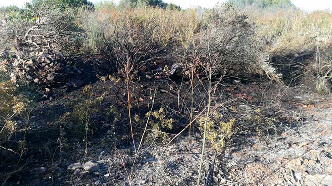 Protección Civil y los Bomberos de Felanitx apagan un pequeño fuego de matorrales