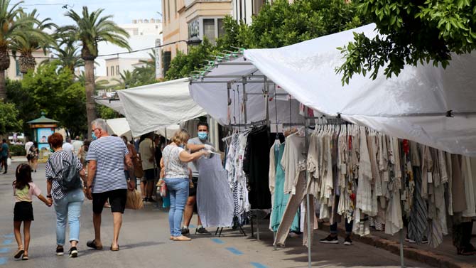 No es aún el ritmo de otros tiempos, pero poco a poco se nota como la actividad va incrementándose y como los ciudadanos pasean ya entre las distintas paradas, con las normas de seguridad imprescindibles que aún siguen vigentes.