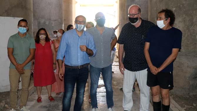 El conseller de Turisme, Andreu Serra, junto al alcalde de Felanitx, Jaume Monserrat, acompañado de varios miembros del consistorio visitaron ayer el lugar de rodaje.