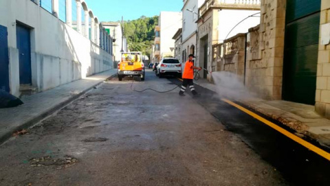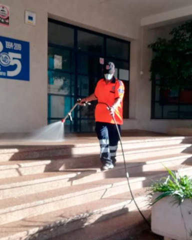 Aquest dijous els voluntaris de protecció civil han col·laborat amb l'Ajuntament de Felanitx desinfectant els voltants dels centres escolars del municipi.