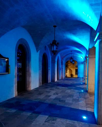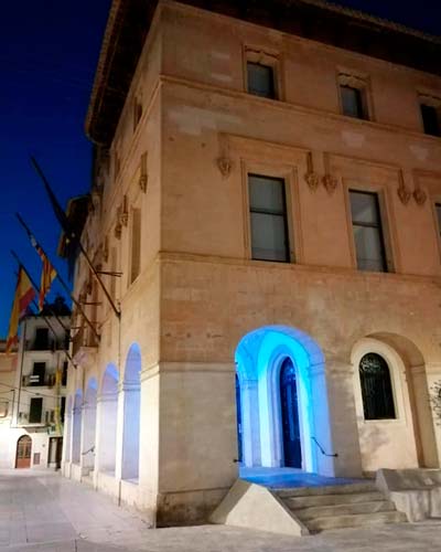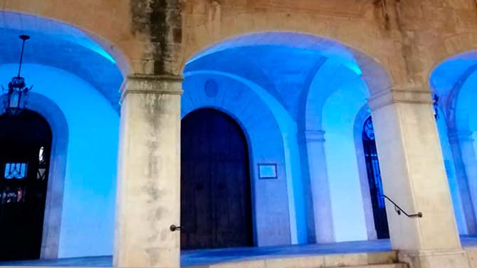 L'ajuntament de Felanitx s'adhereix a la campanya #UnidosPorLaDislexia il•luminant de blau turquesa el porxo del Consistori.