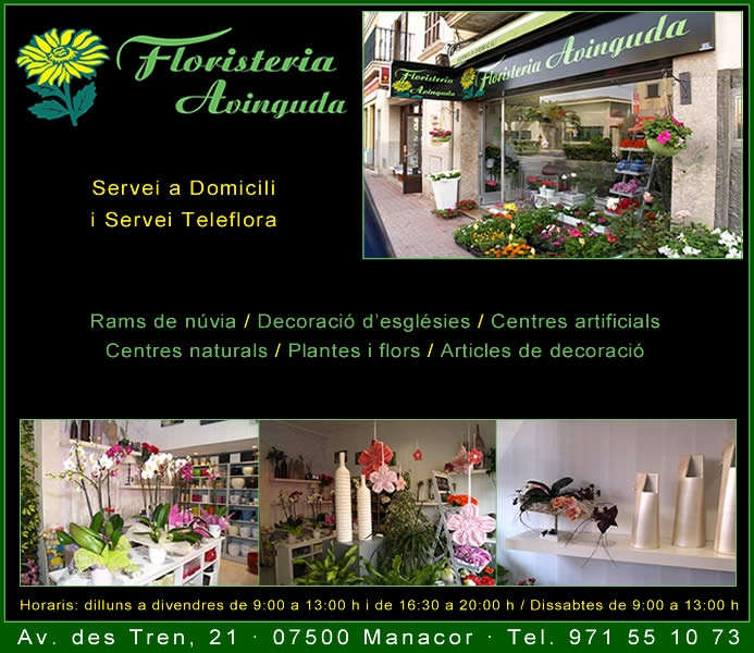 Floristería Avinguda es uno de los mejores lugares de nuestra ciudad, para adquirir una planta o elegir un bello ramo de flores, realizado siempre con estilo, diseño y delicadeza. Las manos artesanas y la prodigiosa habilidad para mezclar colores y formas convierten, a la Floristería Avinguda en un lugar ideal donde adquirir aquel detalle de buen gusto con el que siempre uno o una quedará bien ante sus compromisos.