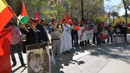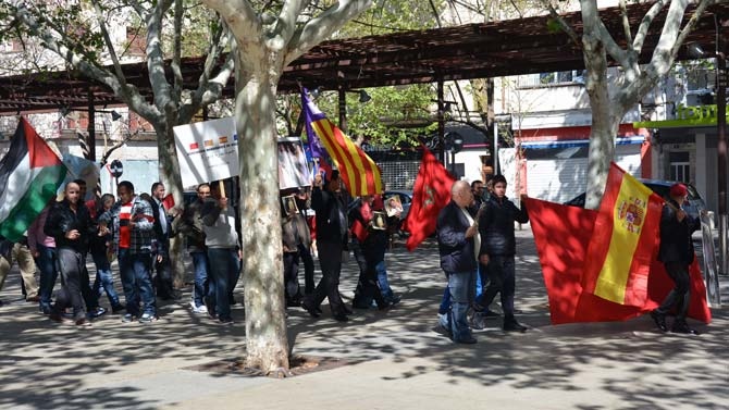 Dudo mucho que esta gente sepa el motivo rela de la manifestacion,la bandera supuestamente saharaui,realmente es la bandera de palestina.