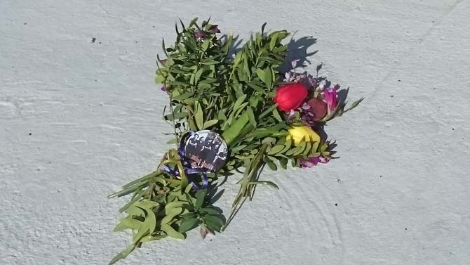 Hoy unas sencillas y emotivas flores descansaban a los pies del mural, prueba inequívoca que los pueblos además de sentimientos tienen memoria.