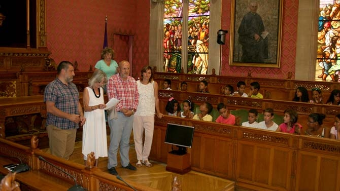 El president del Consell de Mallorca Miquel Ensenyat, el vicepresident segon Jesús Jurado i la director insular d’Esports Margalida Portells han rebut els nins i les nines sahrauís que han passaran a Mallorca els mesos de juliol i agost dins el programa “Vacances en Pau” de l’Associació d’Amics del Poble Sahrauí de les Illes Balears.