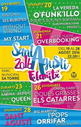 El ayuntamiento de Felanitx consolida su apuesta por las verbenas gratuitas. Si ya el pasado año 2015 fueron de acceso libre (el concierto de pago de Víctor Manuel, anunciado estando el PP aún en el poder, finalmente fue anulado), este 2016 se repetirá la situación. De esta forma se facilita la participación de toda la ciudadanía, jóvenes y adultos, en las Festes de Sant Agustí.
