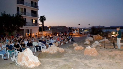 El públic, el pregoner i la banda varen tenir un escenari privilegiat: l'horitzó en el mar que es veu des de la Ronda del Matí. L'acte va començar a les nou del vespre amb el pregó que oferí el veïnat de s'Illot, ex regidor de l'Ajuntament i aficionat a l'excursionisme i a la història Antoni Sansó Barceló. Precisament el pregoner va insistir en la necessitat de revaloritzar els vestigis prehistòrics que concentra s'Illot amb “campanyes d'excavació al talaiot de Cala Morlada”.