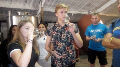 Els alumnes Suecs que fan intercanvi amb els del IES Felanitx han passejat pes poble fent una visita a la Fundació Cosme Bauçà escoltant amb interés les delicioses explicacions (en anglés) de na Maria Mesquida i visita a sa bodega den LLuis Armero que no sabem com ho fa pero sempre enganxa a tothom explicant es procés des vi. Hi ha hagut tast.