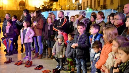 El nombre de sabates que s’han dipositat a terra representen el nombre de dones assassinades i lel fill de 45 dies. La legislació actual inclou a les filles i els fills de les dones maltractades com a víctimes directes o indirectes d’aquesta violència.