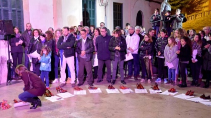 Tras la lectura de un manifiesto a cargo de Carme Vidal, de la Asociación Felanitx per la Igualtat, el cual reproducimos al final de la nota, fueron nombradas una a una las víctimas de la violencia de género, su nombre, su edad, su ciudad, y los hijos que ha dejado. Sus imágenes impresas se iban depositando, una a una, junto a los pares de zapatos.