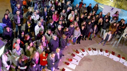 Simbólicamente se habían colocado en círculo tantos pares de zapatos de mujer, teñidos de rojo en una clara y evidente simbología de sangre, como víctimas llevamos en lo que va de año.