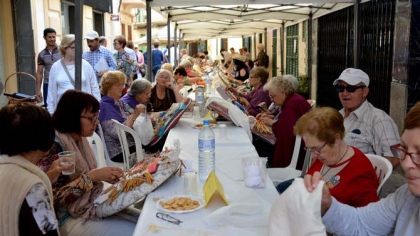 El espectáculo de color que ofrecía la calle Major con las mujeres bordando al estilo tradicional mallorquín era impresionante. Fue una de las manifestaciones de este antiguo arte, más multitudinarias que hayamos podido observar en los pueblos de la comarca.