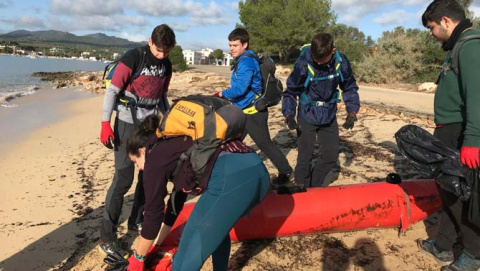 Una trentena d'alumnes de la Cooperativa d'ensenyament Es Lledoner, que cursen un cicle d'FP han sortit a Portocolom per fer un dia de neteja a dues platges i els seus voltants. Són estudiants de Grau Mitjà de Tècnic en Conducció d'Activitats Físiques i Esportives en el Medi Natural.