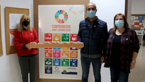 La regidora de cultura, Melanie Mesquida acompanyada del regidor de Ses Salines, Guillem Mas i el representant de l'empresa Culturalment, Bernat Clar ha donat 260€ a la presidenta d'AUBA, Isabel Oliver, l'associació de dones afectades de càncer de mama, taquilla recollida a Felanitx.