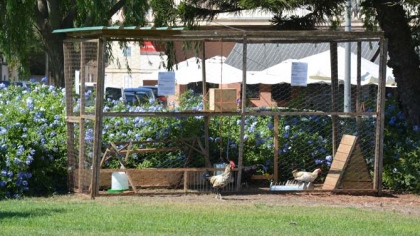 Esta mañana en la rotonda de la plaza Madrid había más gallinas sueltas que nunca, 5 o 6 majestuosos gallos y cinco gallinas con pollitos de muy pocos días + otras sin compañía, por el contrario dentro del gallinero solo 2 gallinas y un gallo.